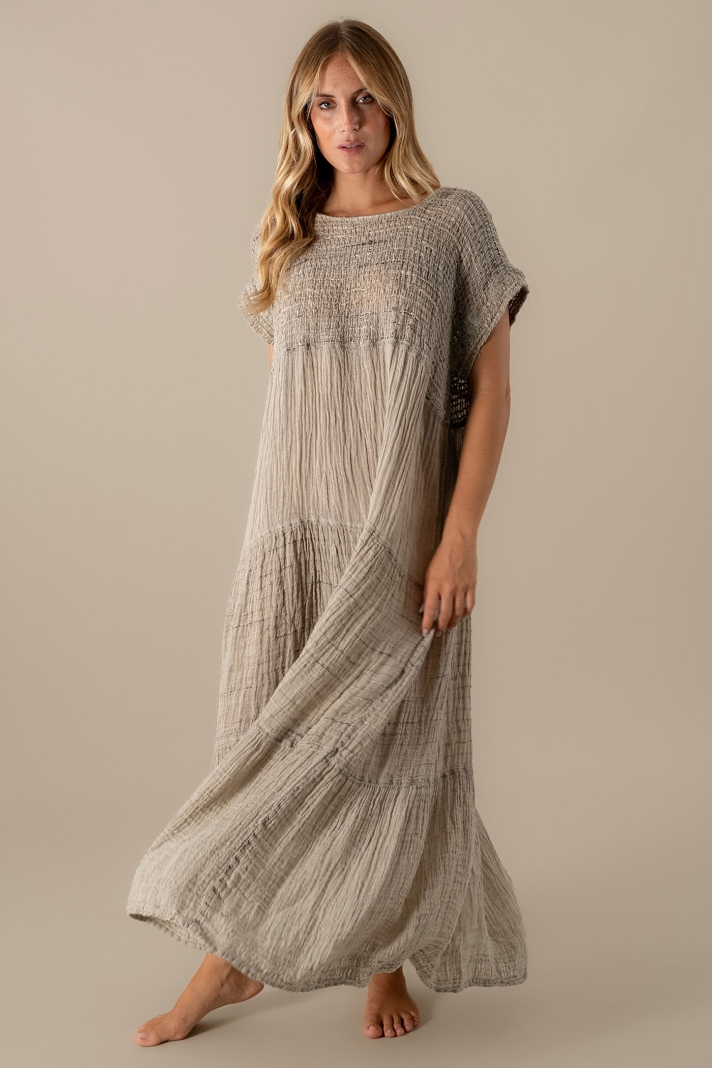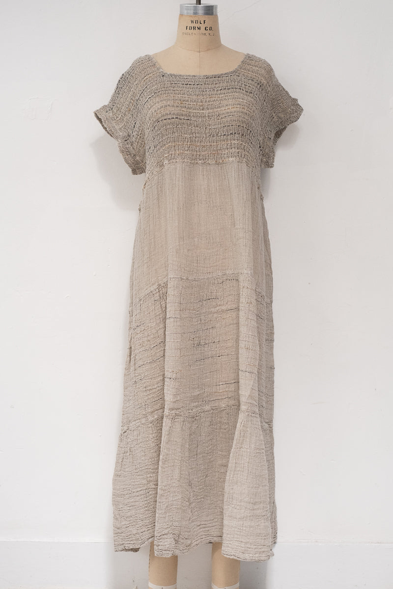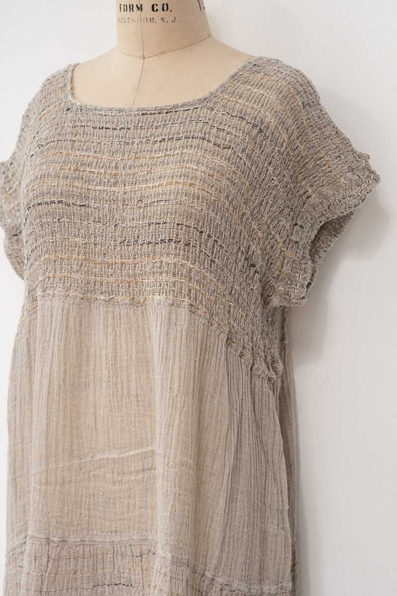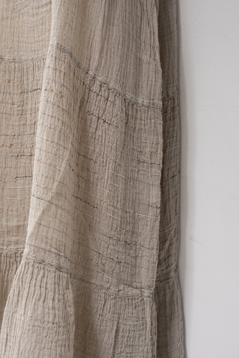 The Vestito Botticelli Egitto is an absolutely stunning one-size dress that showcases La Bottega di Brunella’s mastery of texture and craftsmanship. Designed with four distinct panels, it artfully combines the label’s signature linen fabrics - from a softly textured knit to a delicate gauze-style weave with subtle filaments - creating depth, movement, and a uniquely artisanal feel.